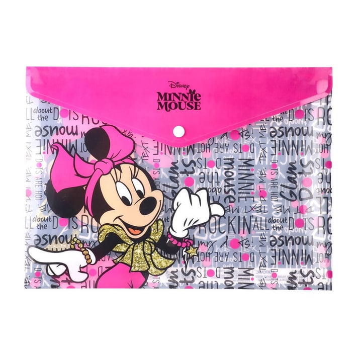 Прозрачна папка с щампа на Мини Маус, подходяща за училище, съхранение и удобно пренасяне на по-голям брой листове или малки тетрадки.
