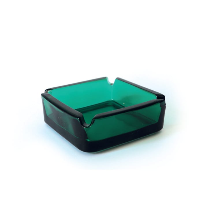Квадратен стъклен пепелник в зелен цвят.