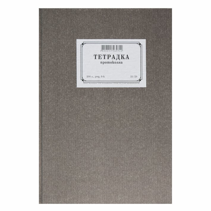 - Протоколна тетрадка, 21 x 29 cm, широки редове, вестникарска хартия, твърда корица, 200 листа
