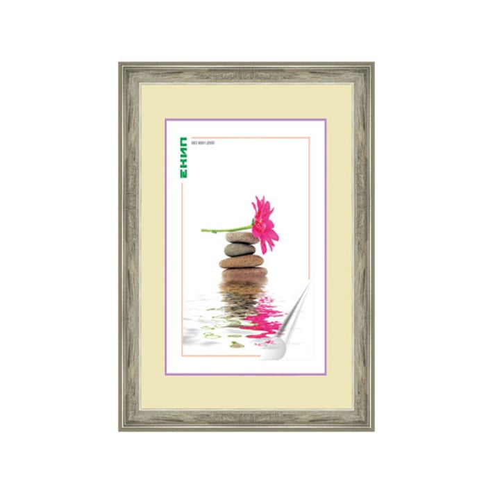 Рамка, A4, плосък профил, с притъркан ефект, сива