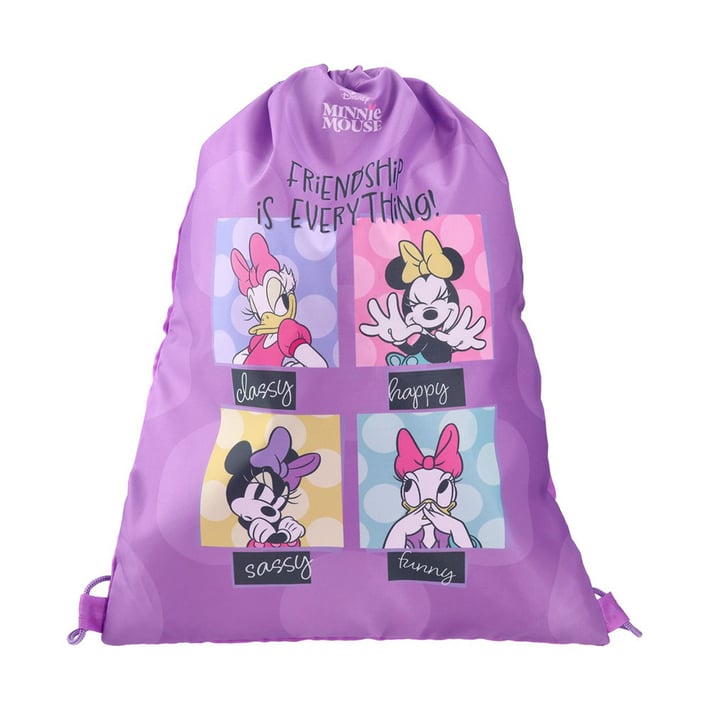 Тази раница тип мешка е практичен и лек аксесоар за ежедневна употреба, училище, спорт или свободно време. Изработена от висококачествен водоустойчив полиестер 300D, тя предпазва съдържанието от влага и е устойчива на износване, като същевременно остава изключително лека.Раницата се затваря удобно с цветни здрави връзки, които позволяват бързо отваряне и носене на гръб или през рамо. Компактният ? размер я прави подходяща както за деца, така и за по-големи ученици, а атрактивният дизайн с любим герой я превръща в желан аксесоар.Размери: 42 х 34 cm.