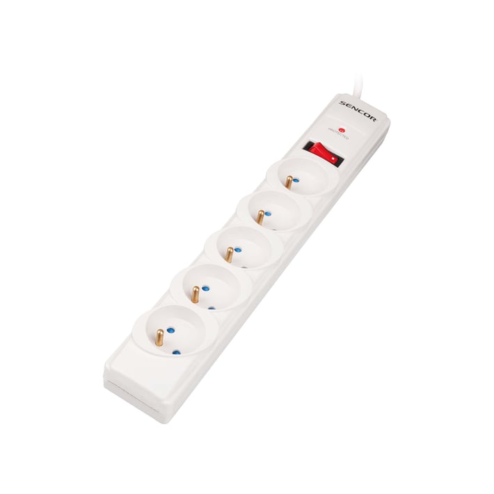 Разклонител Sencor SSP 520, 5 гнезда, с ключ, 1 m, бял, максимален ток 16 A, 2300 W