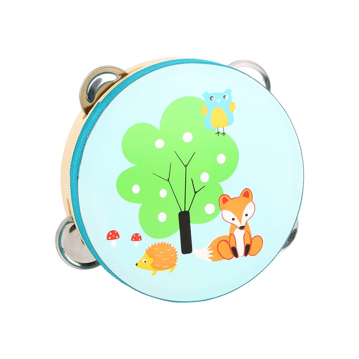 Атрактивната тамбурина ще накара всички да танцуват. Трите камбани обещават чудесно музикално забавление. Чрез удряне на еластичната повърхност с ръка се тренира чувството за ритъм. Нека танците започнат!