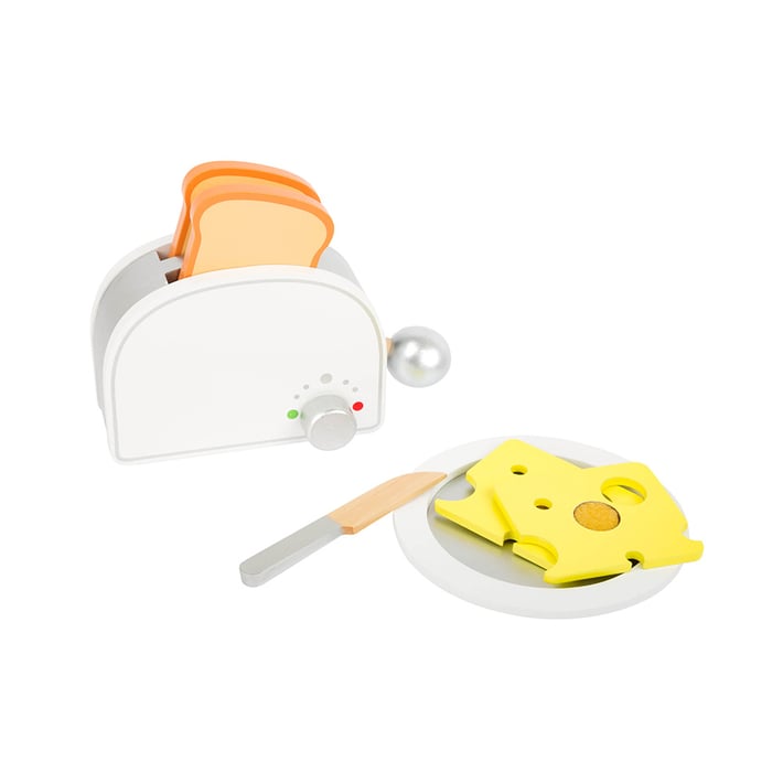 Компактният дървен тостер прави закуската два пъти по-забавна! Филийките се препичат, докато не изскочат, след което са готови да отидат в чинията с резен сирене! Частите на сиренето са прикрепени с Velcro® и могат да се отделят с включения дървен нож. И сега, забавлявайте се!