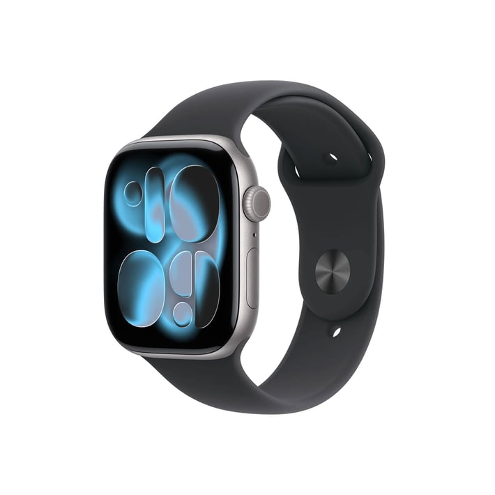 • Apple Watch Series 11 комбинира най-новите технологии за здраве, свързан живот и ежедневна ефективност в изискан и ергономичен корпус. С Sport Band каишка този смарт часовник е готов да те придружи през целия ден - от тренировка до работа, от релакс у дома до активна социална ангажираност.