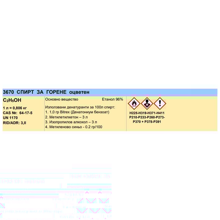 Спирт за горене, син, 1L