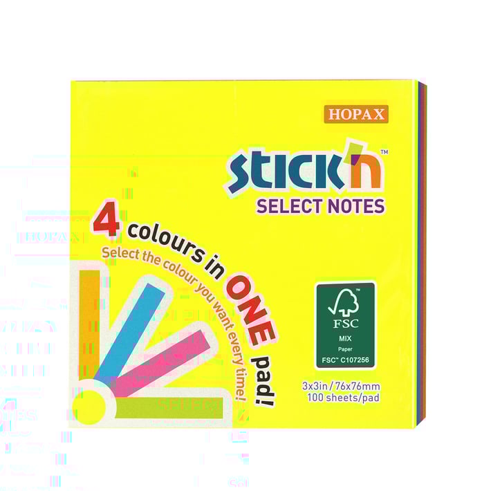 Stick'n Самозалепващи се листчета Select Notes, 76 x 76 mm, 4 цвята, 100 листа