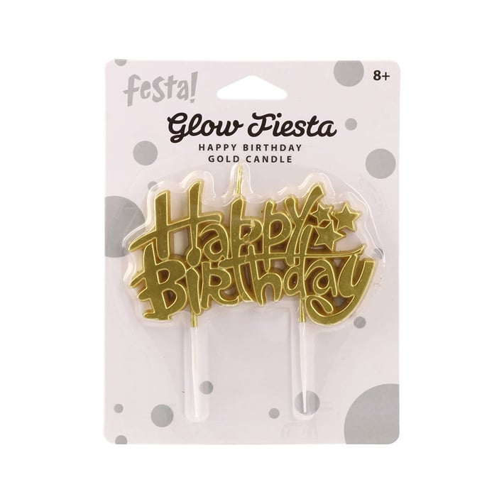 Свещ за торта Festa, Happy Birthday, златиста