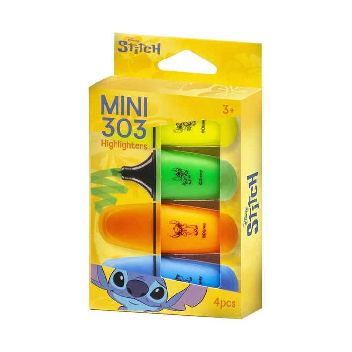 Комплект текст маркери с декоративен дизайн Stitch и мастило на алкохолна основа. Маркерите са със скосен връх, който позволява както по-фино подчертаване, така и маркиране на по-широки линии. Мастилото изсъхва бързо и не се разлива върху хартията, което ги прави подходящи за използване в училище, офиса или при работа с документи.