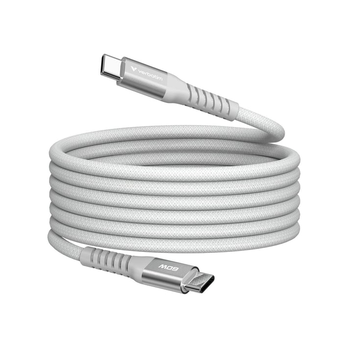 - Кабел Verbatim Sync & Charge, магнитен, USB Type-C към USB Type-C, 60 W, 120 cm, сив
