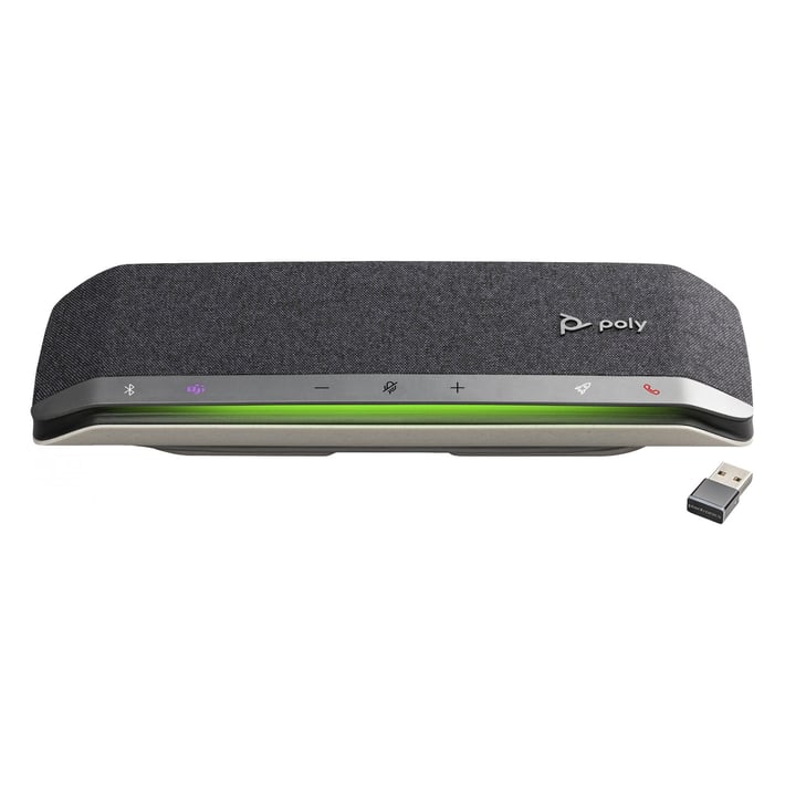 Poly Sync 40 е професионален, преносим високоговорител, който комбинира качествен звук, многомикрофонна система и гъвкава свързаност, подходящ както за домашен офис, така и за малки зали за срещи.