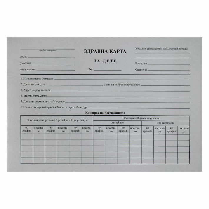 - Здравна книжка за дете, 16 листа