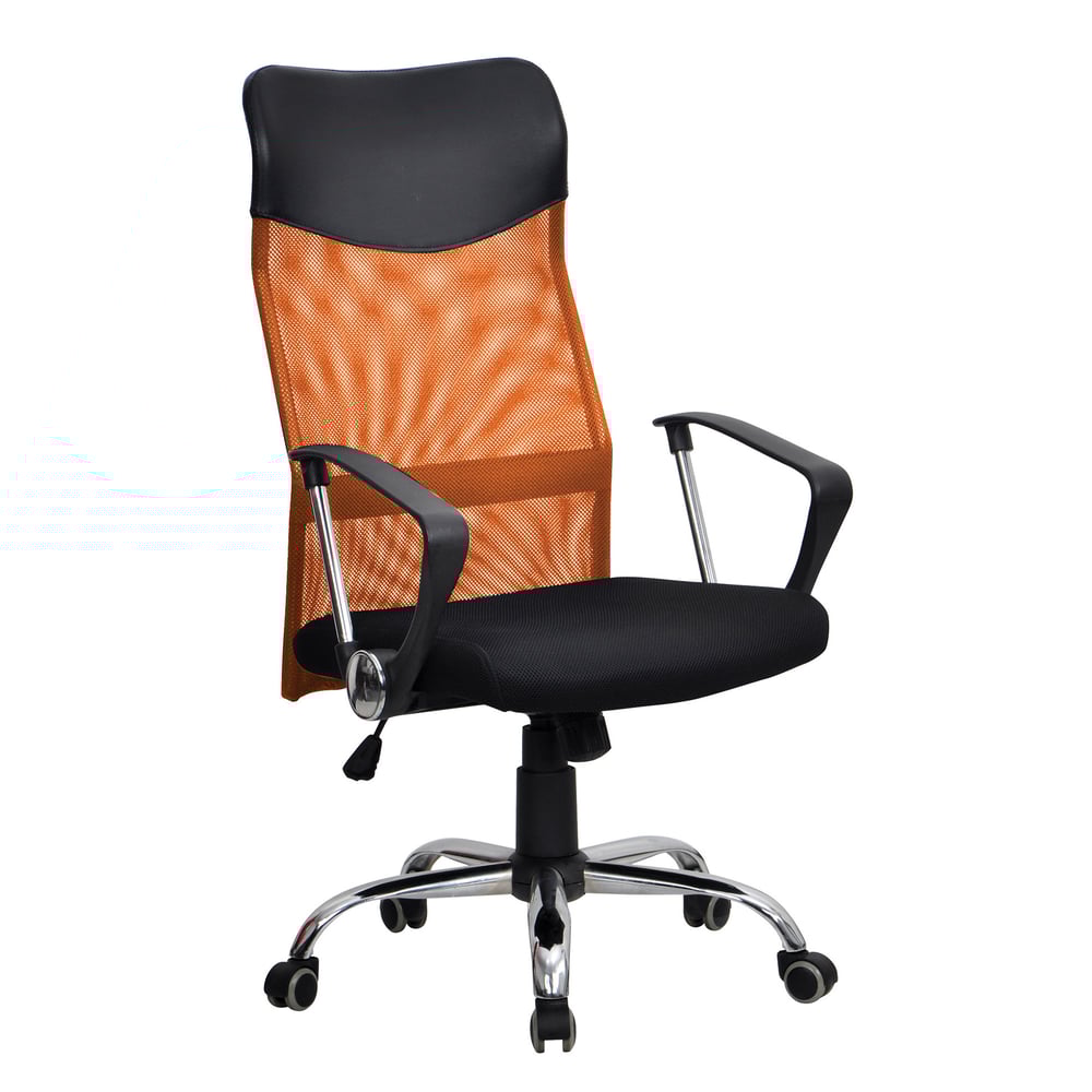 Директорски стол Monti HB, текстил, екокожа и меш, Tilt механизъм, до 120 kg, черна седалка, оранжева облегалка